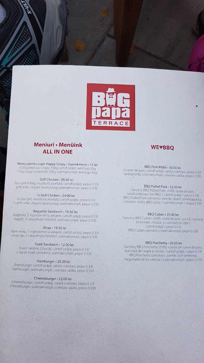 Welcome to Big Papa Terrace, a charming restaurant nestled in the heart of Sfântu Gheorghe, Romania. Located at Strada Bem József 3, this venue promises a delightful culinary experience. The menu features a diverse selection of dishes, catering to various tastes at reasonable prices.